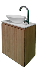 Ken Kessler massivt egtræ kvalitet mini badeværelses-sæt 45 cm (integreret håndtag) - Corian bordplade og mineralstøbt håndvask (toiletmøbler) På lager