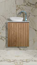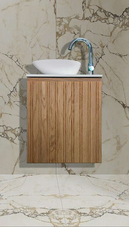 Ken Kessler mini er en toiletmøbler serie med integreret greb. I dette tilfælde med en speciel 3D mat massivt egetræ front og skabsside i 2D massivt egetræ.